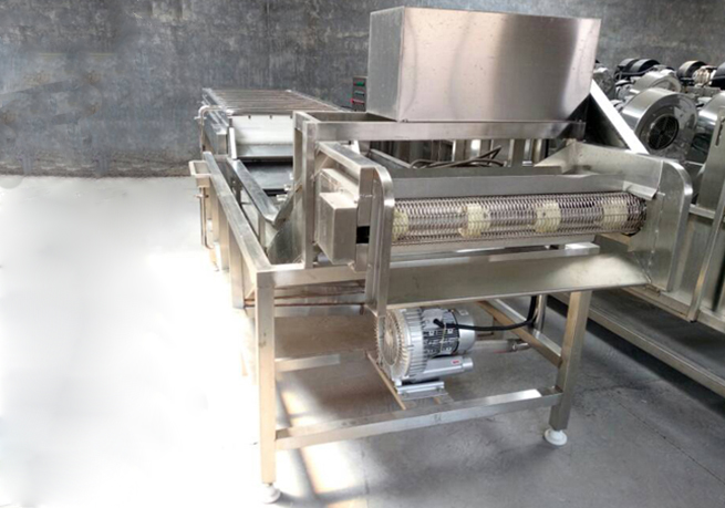 該流水線主要由清洗段、提升輸送段、震動(dòng)瀝水段以及風(fēng)干除水段組成,主要用于袋裝食品的高低溫殺菌后,產(chǎn)品表面油污、油漬的連續(xù)清洗及風(fēng)干。